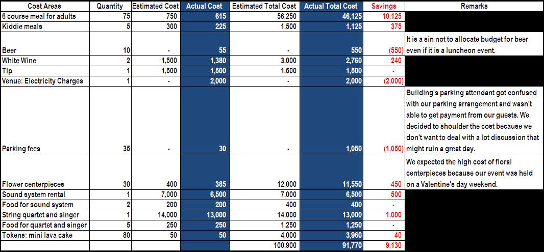 Our budget was Php 120,000 inclusive of miscellaneous expenses. We saved Php 28,230 because we only spent Php 91,770.