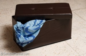 My husband chanced upon an ottoman cum storage box yesterday while we are doing our weekend errands. The first thing we did was to sit on it to ensure that it is comfortably cushioned and can sustain our weight.