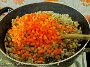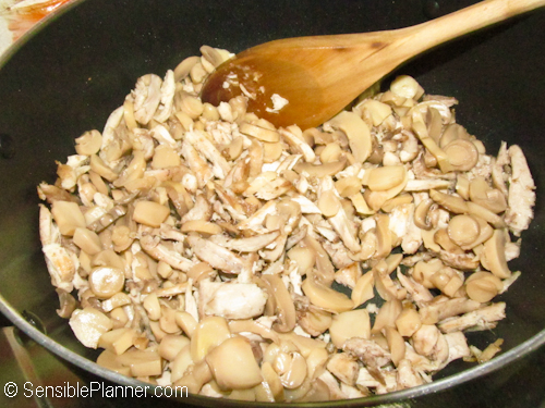 4. Add the sliced button mushrooms. (To cut down preparation time, choose the canned pieces and stems mushrooms.)